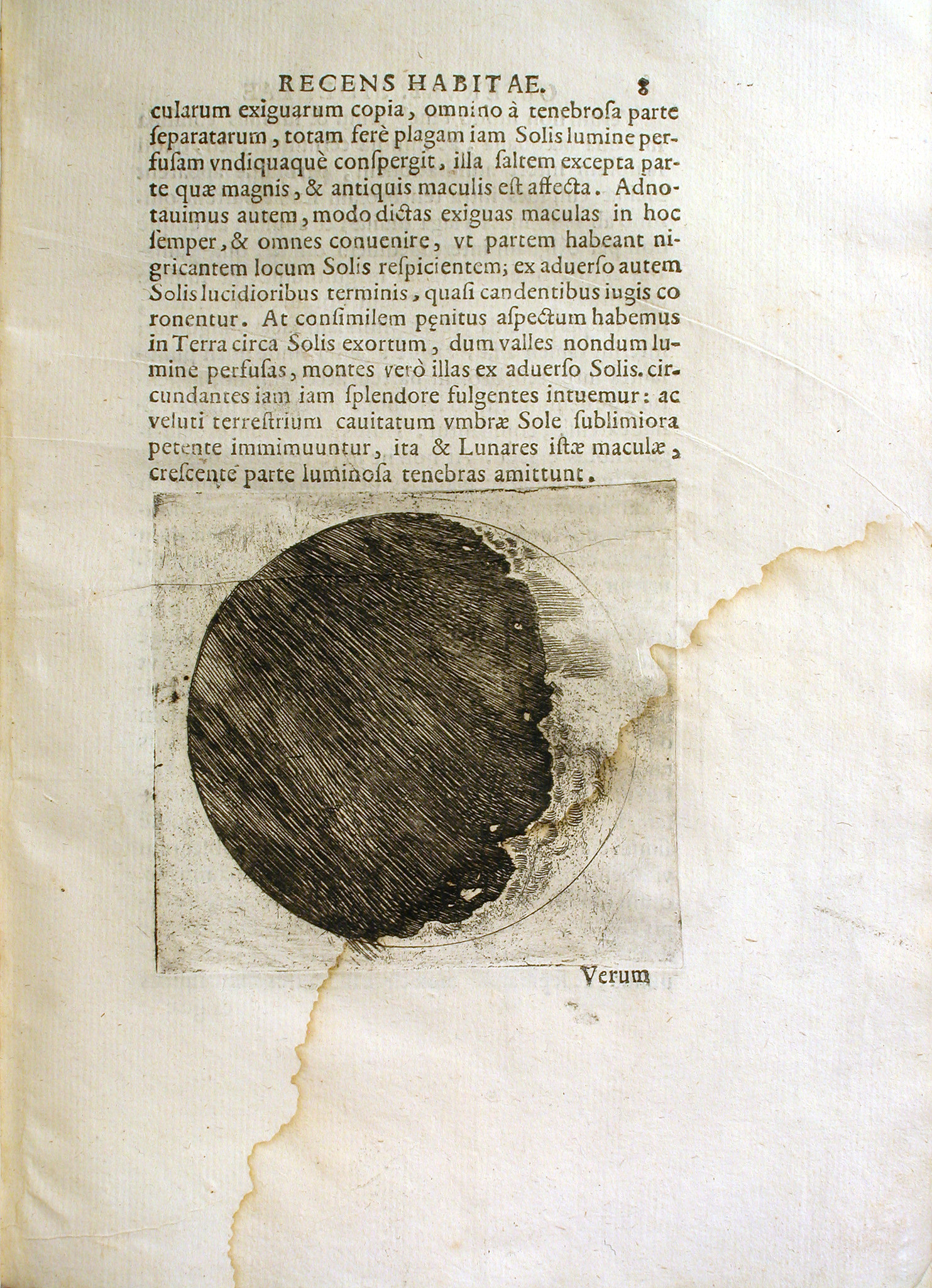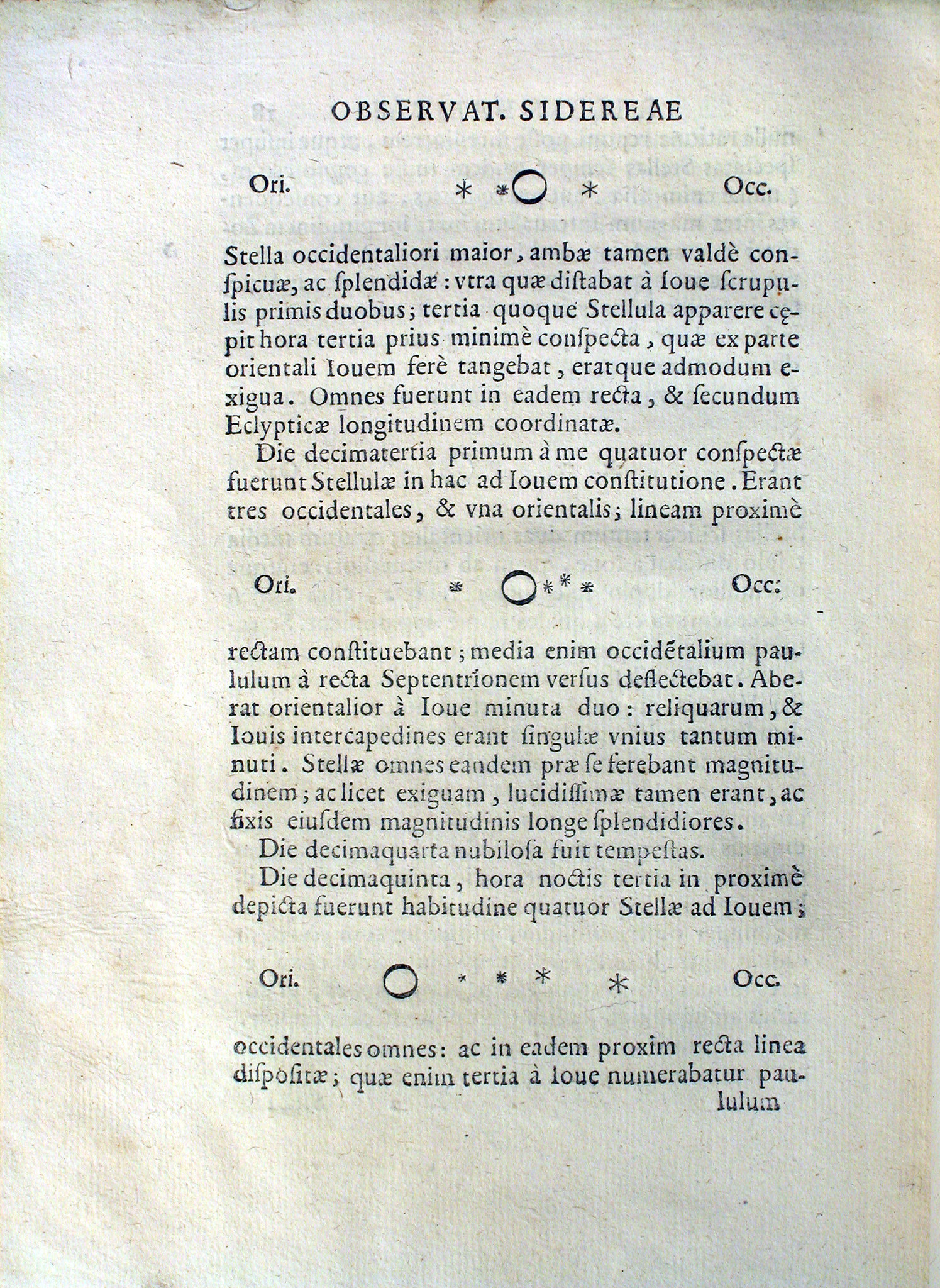 I include below several pictures from the very richly illustrated Starry Messenger. All of these images are from the copy of the Starry Messenger in the OU History of Science Collections. You can see more of the book on the OU History of Science Collections Flickr site. For an explanation of the contents of the Starry Messenger and their implications, read The Starry Messenger: What it Said and What that Really Meant! by Thony Christie. Please note, this is REQUIRED READING.