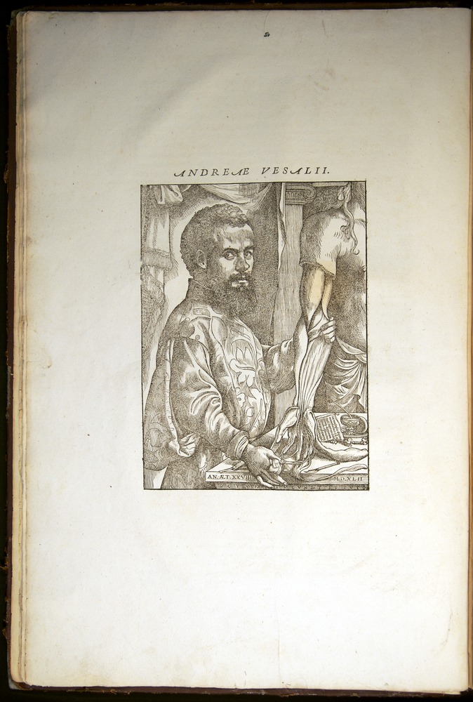 Anatomists enjoyed the patronage of emperors, kings, princes and popes. The young (he was only twenty-eight when the Fabrica was published) and ambitious Vesalius was not satisfied with his position as professor at the University of Padua and he actively sought a position at the court of the Holy Roman Emperor Charles V. He dedicated the Fabrica to Charles V and sent the emperor a sumptuous presentation copy, printed on vellum, hand colored and bound in purple velvet. In the dedicatory preface, Vesalius praised Charles for his “amazing love for all disciplines.” Noting Charles’ interest in mathematics and cosmology, Vesalius commented: “Because you are so uniquely fascinated by the study of the world, I am quite sure that you will be delighted also to study the construction of the most perfect of all creatures and will take pleasure in examining the lodging-house and instrument of the immortal soul. . . . ” In his bid for imperial patronage, Vesalius presented anatomy not simply as a subject of interest to physicians, but one that was properly the domain of all educated Christian men.